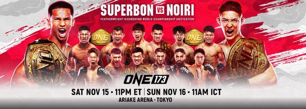 ONE 173 sera diffusé en direct depuis l’Ariake Arena de Tokyo, au Japon. L’événement est actuellement prévu pour 17 combats et sera souligné par l’événement principal de la soirée, mettant en vedette le Thaïlandais Superbon affrontant le Japonais Masaaki Noiri dans un match d’unification du titre mondial des 155 livres.